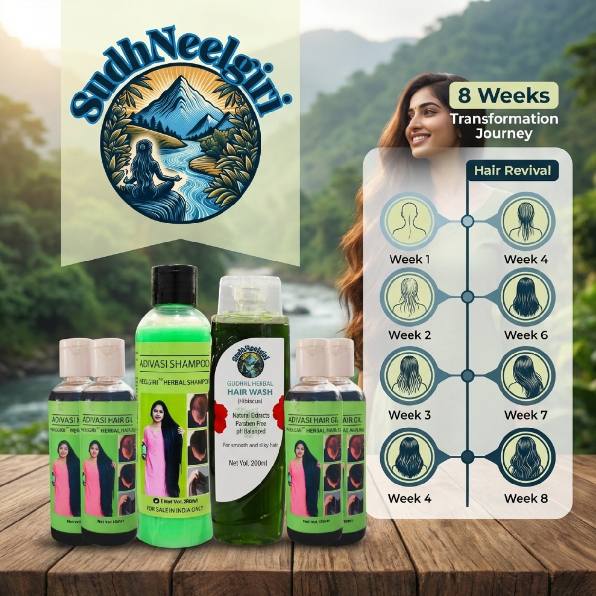 - Complete Hair Care Regimen: 400ml Neelgiri Herbal Hair Oil, 200ml Adivasi Herbal Shampoo, and 200ml Gudhal Hibiscus Hair Wash 💧.